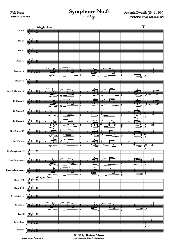Symphony #8 G-major, 2. Adagio - Muzieknotatie-voorbeeld