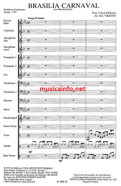 Brasilia Carnaval - klik hier Brasilia Carnaval (harmonieorkest; drumfanfare), partituur en delen