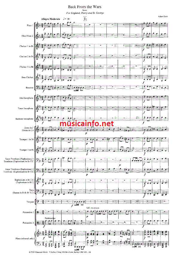 Back from the Wars (from 'For England, Harry and St. George') - klik hier Back from the Wars (from 'For England, Harry and St. George') (harmonieorkest; jeugdorkest), partituur en delen