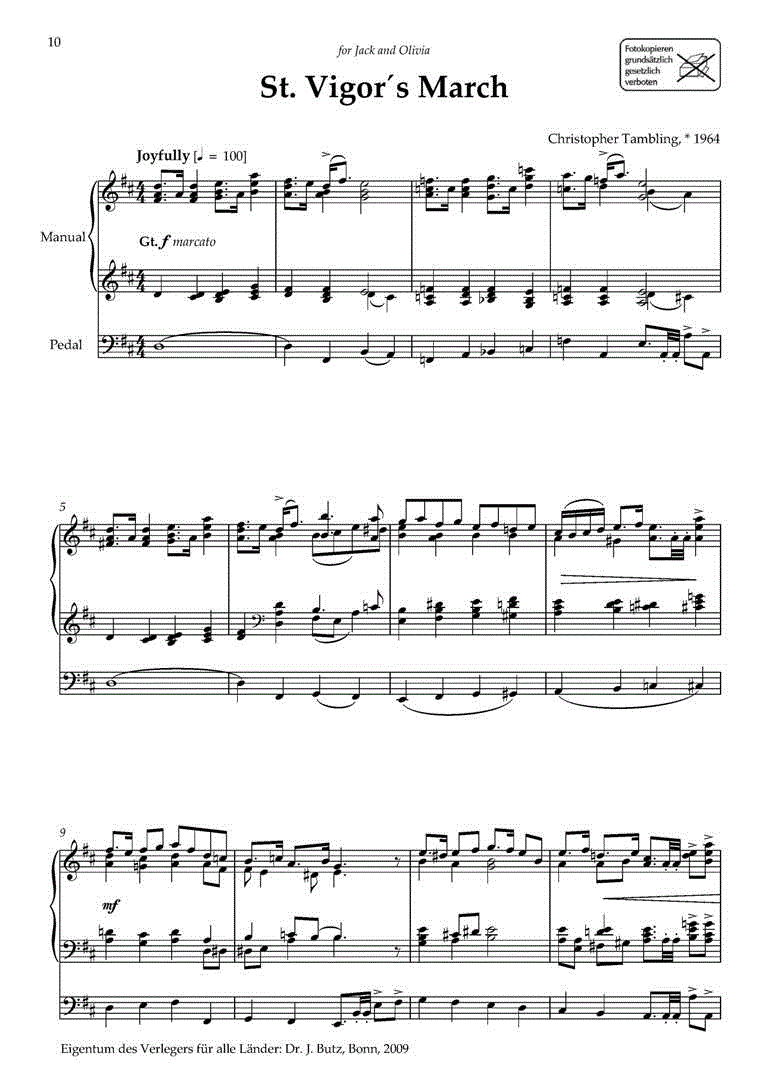 'Ein Name und Stücke, die aufhorchen lassen! Zehn Stücke von unter-schiedlichem Schwierigkeitsgrad mit großer Wirkung und einer Vielfalt, die man selten antrifft. Diese Musik macht richtig Spaß! Eine sehr gelungene Publikation.' [Kirchenmusik im Bistum Aachen 9/2009]