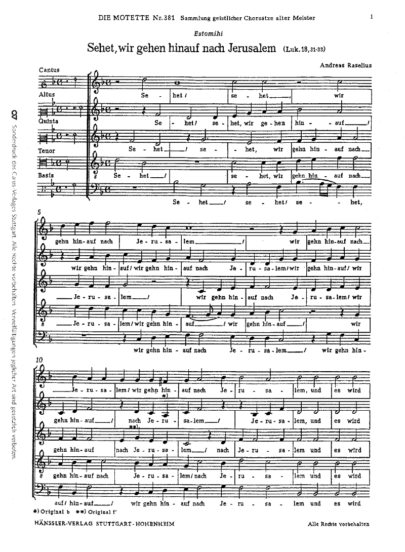 Sehet, wir gehen hinauf nach Jerusalem - Muzieknotatie-voorbeeld