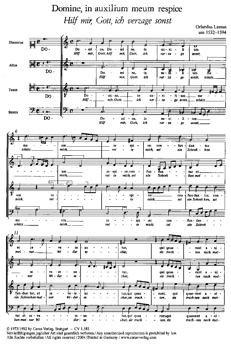 Domine, in auxilium meum respice (Hilf mir, Gott, ich verzage sonst) - Muzieknotatie-voorbeeld