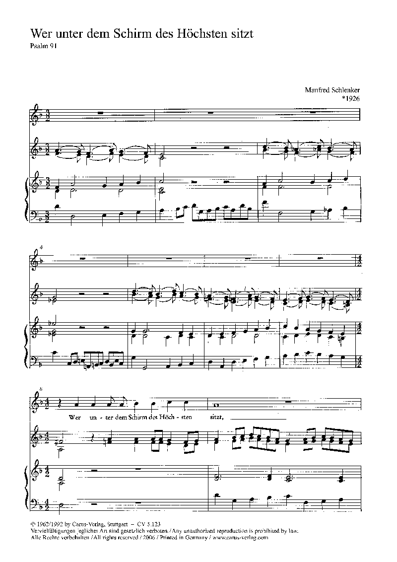 Wer unter dem Schirm des Höchsten - Muzieknotatie-voorbeeld