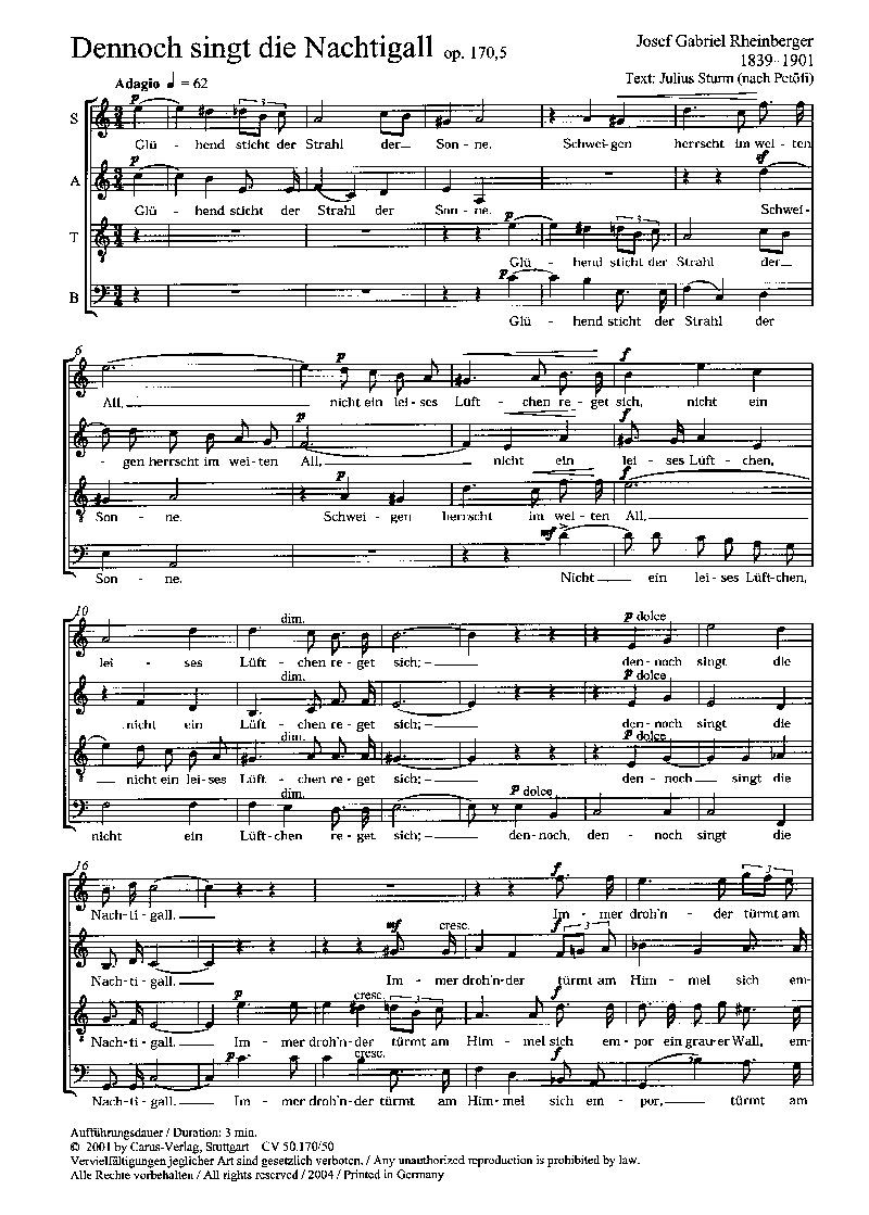 Dennoch singt die Nachtigall - Muzieknotatie-voorbeeld