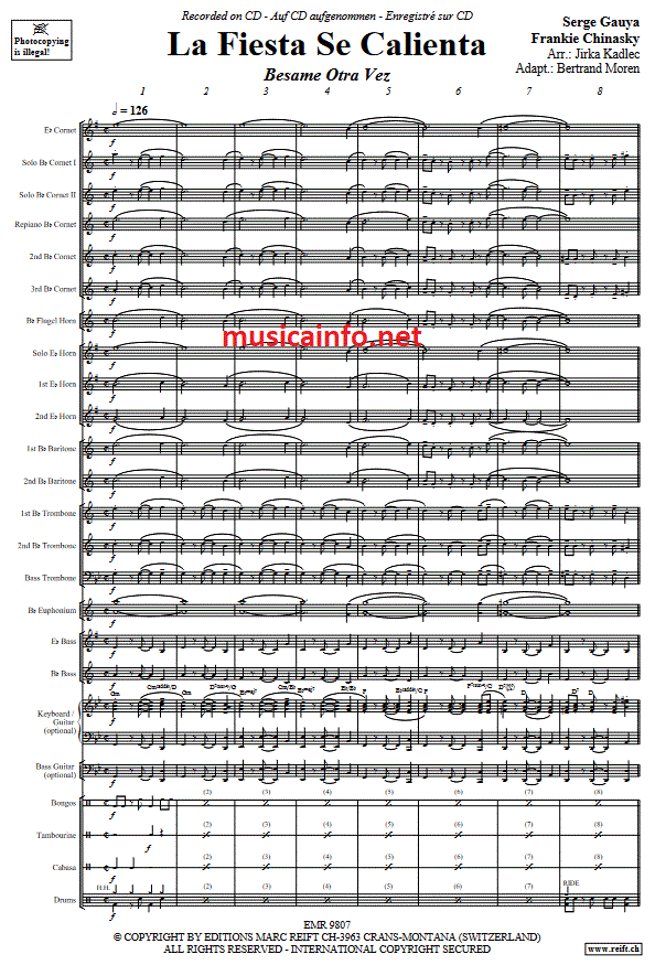 La Fiesta Se Calienta (Besame Otra Vez) - klik hier La Fiesta Se Calienta (Besame Otra Vez) (brassband), partituur