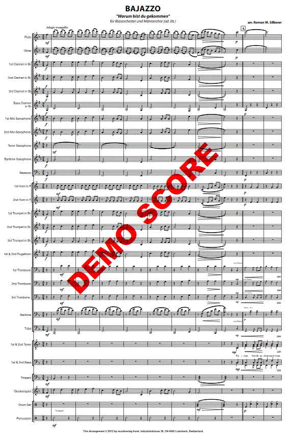Bajazzo (Warum bist du gekommen) - klik hier Bajazzo (Warum bist du gekommen) (harmonieorkest; gemengd koor), partituur