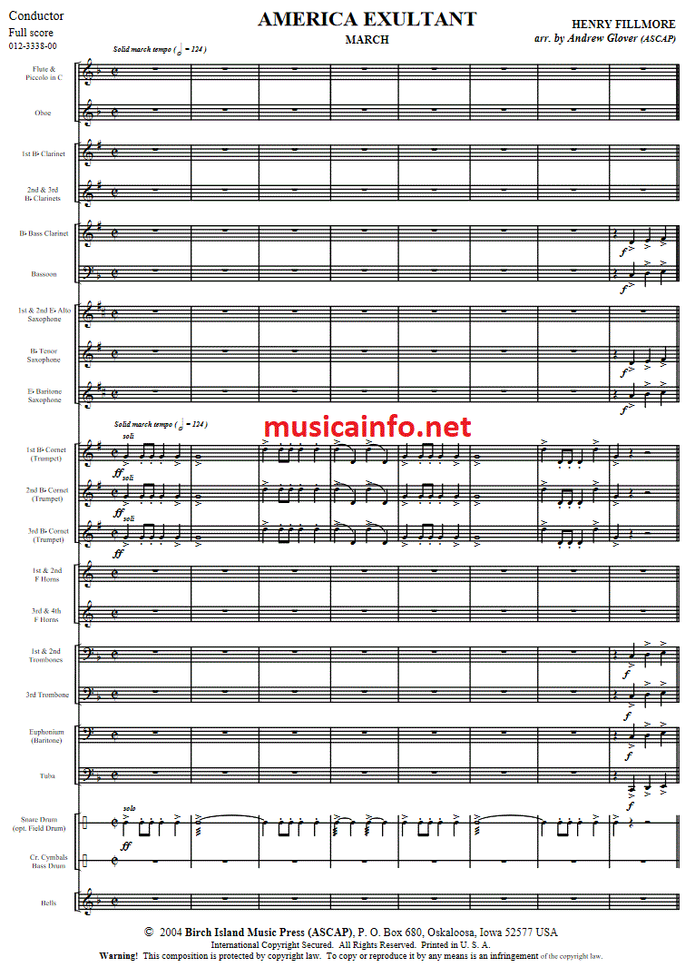 America Exultant March - klik hier America Exultant March (harmonieorkest), partituur en delen