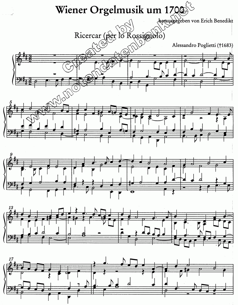 Aanvullende informatie/inhoud Ricercar in D (Poglietti)