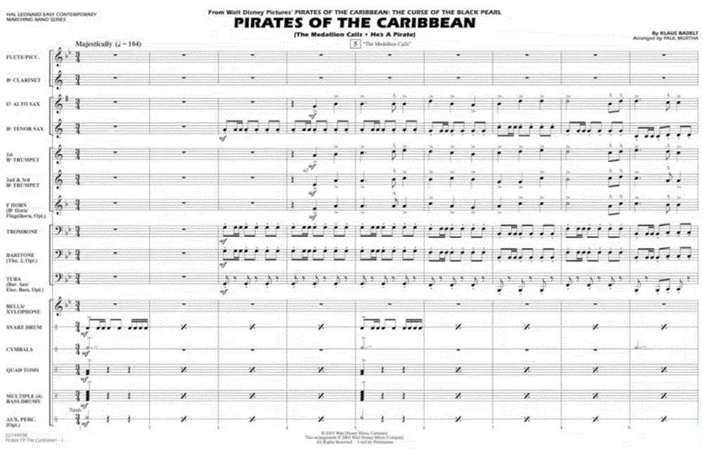 Pirates of the Caribbean: The Curse of the Black Pearl - Muzieknotatie-voorbeeld