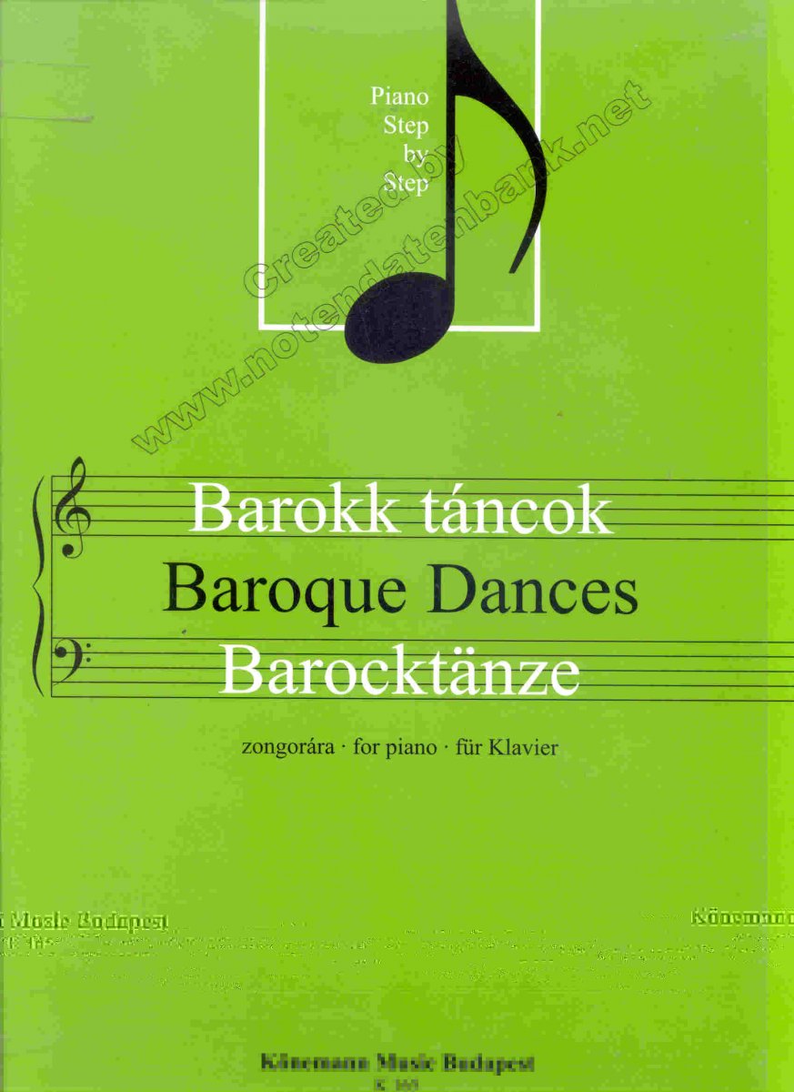Allemande in g (Bach, BWV.836) Allemande in h (Froberger) Allemande in G (Händel, HWV.441/I) Courante in G (Händel, HWV.441/III) Courante in g (Zipoli) Courante in F (Händel, HWV.488) Sarabande in d (Händel, HWV.448/V) Sarabande in e (Corelli) Sarabande in c (Graupner) Sarabande in h (Kuhnau) Sarabande in C (Couperin) Sarabande in fis (Pachelbel) Sarabande in e (Händel, HWV.438/II) Sarabande in B (Bach, BWV.821/IV) Gigue in h (Dandrieu) Gigue in g (Zipoli) Gigue in G (Telemann, TWV.32:1/VI) Bourrée in B (Graupner) Bourrée in h (WF.Bach) Bourrée in B (Pachelbel) Bourrée in F (Bach, BWV./820/III) Bourrée in g (Stölzel) Bourrée in c (Krebs) Gavotte in F (Telemann, TWV 32:4/IV) Gavotte in D (Dandieu) Gavotte in g-G (Bach, BWV.808/IV-V) Gavotte in G (Bach, BWV.816/IV) Gavotte in G (Graupner) Menuet in d (Lully) Menuet in D (Rameau) Menuet in C (Scarlatti) Menuet in a (Purcell, Z.649) Menuet in a (Krieger) Menuet in C (Muffat) Menuet in G (Kirnberger) Menuet in g-G (Bach, BWV.822/V, VII) Menuet in g (Petzold, BWV.Anh.115) Menuet in G (Petzold, BWV.Anh.114) Menuet in c (Dandrieu) Menuet in g (Händel, HWV.453/III-IV) Menuet in g (Bach, BWV.842) Menuet in c (Bach, BWV.813/V) Passepied in A (Händel, HWV.560) Passepied in D (Anonymus) Passepied in h (Krebs) Hornpipe in d (Prucell, Z.668/III) Hornpipe in e (Purcell, Z.T685) Hornpipe in d (Händel, HWV.461) Rigaudon in D (Krebs) Rigaudon in c (Telemann, TWV.33:13/III) Rigaudon in a (Babell) Rigaudon in C (Purcell, Z.653) Rigaudon in D (Böhm) Loure in a (Telemann, TWV.32:12/III) Polonaise in g (Bach, BWV.Anh.119) Polonaise in g (CPE Bach, BWV.Anh.125) Polonaise in F (Bach, BWV.Anh.117a) Polonaise in g (CPE Bach, BWV.Anh.123) Polonaise in G (Hasse, BWV.Anh.130) |