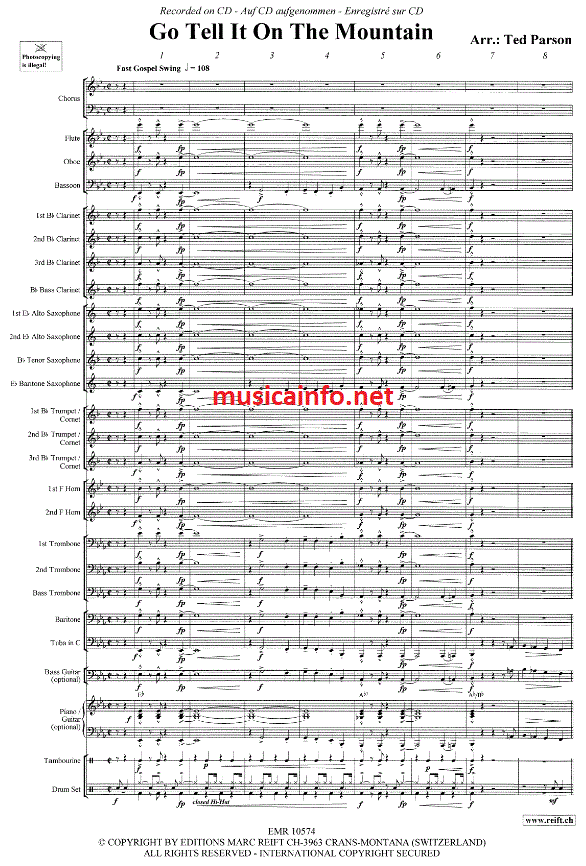 Go Tell It On The Mountain - klik hier Go Tell It On The Mountain (harmonieorkest; oder; fanfare; gemengd koor), partituur