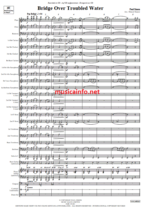 Bridge Over Troubled Water - klik hier Bridge Over Troubled Water (harmonieorkest), partituur