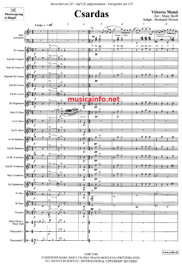 Csardas - klik hier Csardas (brassband; Accordeon), partituur