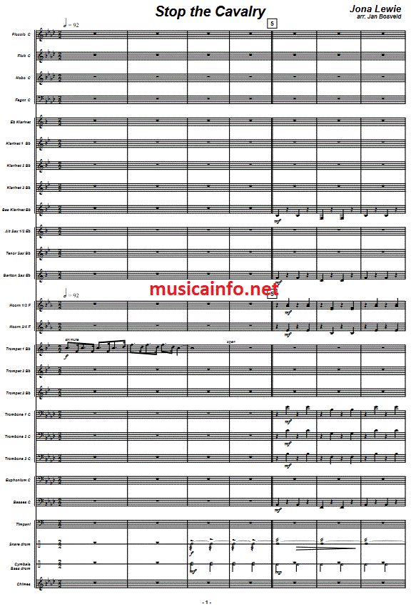 Stop the Cavalry - Muzieknotatie-voorbeeld