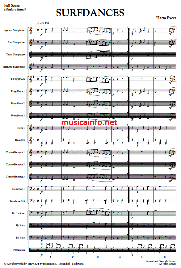 Surfdances - klik hier Surfdances (fanfare), partituur