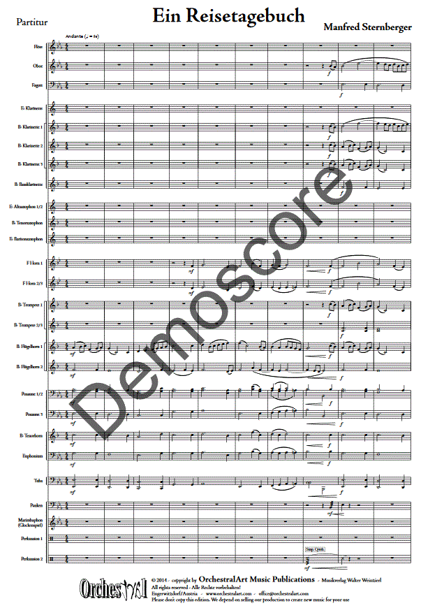 Aanvullende informatie/inhoud Met de compositie "Ein Reisetagebuch" (Een reisdagboek) probeert Manfred Sternberger verschillende indrukken en ervaringen, die men verzamelt op een reis, op een muzikale manier te presenteren.