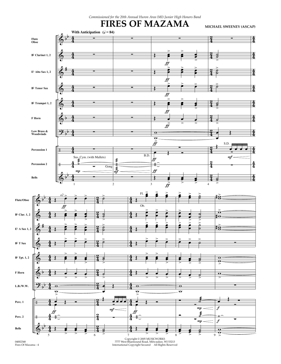 Fires of Mazama - klik hier Fires of Mazama (harmonieorkest), partituur en delen
