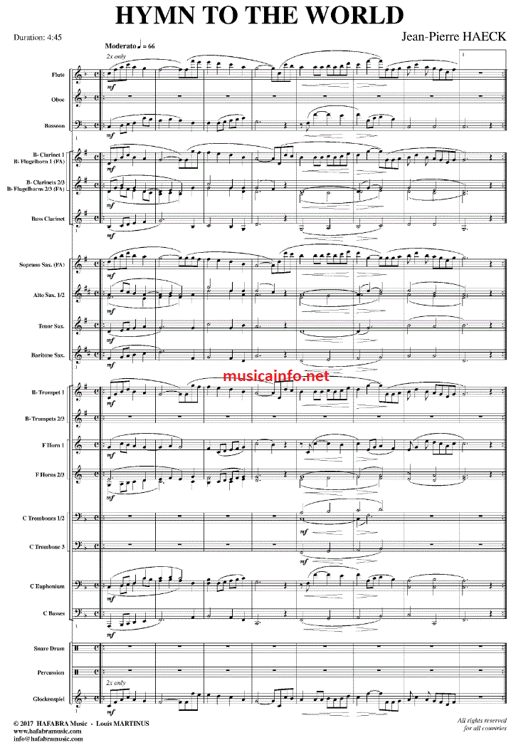 Hymn to the world - klik hier Hymn to the world (harmonieorkest), partituur