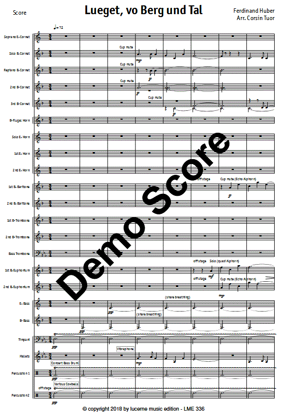 Aanvullende informatie/inhoud "Lueget, vo Berg und Tal" is een 19e-eeuws Zwitsers volksliedje, geschreven door Ferdinand Huber. Dit lied, met zijn triadische sprongen ontleend aan de alpenhoorn, is vele malen geïnterpreteerd door Zwitserse liedschrijvers en is gebaseerd op een gedicht van Josef Anton Henne. De oorspronkelijke titel van het lied was "Avondlied van de Wehrliknaben in Hofwyl". De melodie en de warm aanvoelde harmonische textuur hebben niet alleen een typisch "Zwitserse klank", maar dragen ook een uitgesproken Berner tintje. "Lueget, vo Berg und Tal" is nog steeds diep geworteld in de hedendaagse bevolking en wordt door velen beschouwd als een van de mooiste Zwitserse volksliederen.