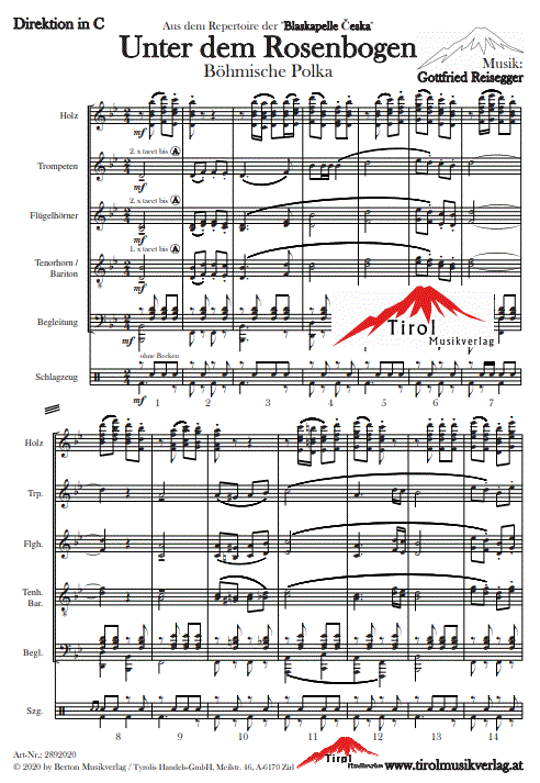 Aanvullende informatie/inhoud Een zeer succesvolle polka uit het oorspronkelijke repertoire van de Blaskapelle Ceska. Niemand minder dan bandleider en klarinettist Gottfried Reisegger creëerde deze prachtige en gevarieerde polka. Natuurlijk mag een solopartij voor de klarinetten hier niet ontbreken. De polka is verkrijgbaar als arrangement voor groot blaasorkest en ook in de originele bezetting van de Blaskapelle Ceska.