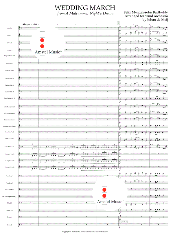Wedding March (from 'A Midsummerr Night's Dream') - klik hier Wedding March (from 'A Midsummerr Night's Dream') (harmonieorkest), partituur
