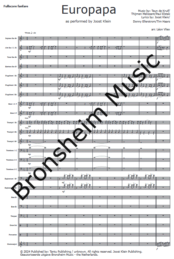 Componist en arrangeur Léon Vliex is erin geslaagd een uitstekend arrangement te creëren dat heel dicht bij het origineel staat. De grote trom speelt een belangrijke rol!