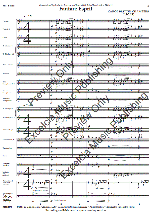 Aanvullende informatie/inhoud Op zoek naar een spannende en energieke muzikale ervaring? Zoek niet verder dan Fanfare Esprit van Carol Brittin Chambers! Dit stuk neemt je mee naar een wereld van klassieke fanfares met een twist, vol weelderige melodieën en complexe ritmes. Mis deze opwindende muzikale reis niet!
