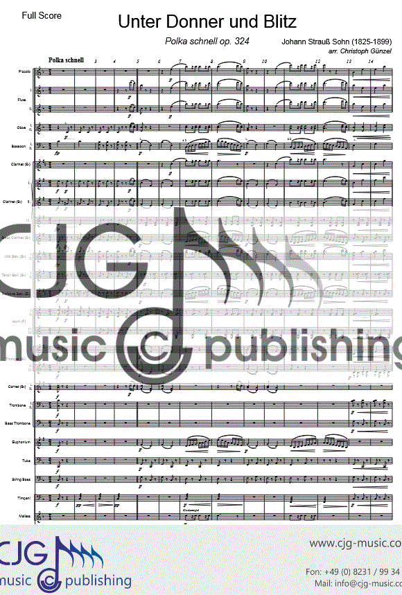 Unter Donner und Blitz - Muzieknotatie-voorbeeld
