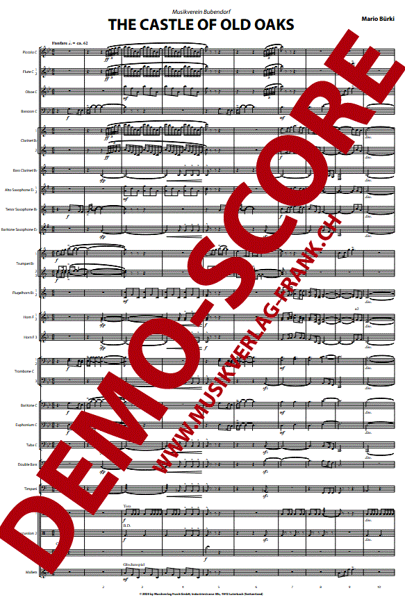 Aanvullende informatie/inhoud Een feestelijke barokmelodie opent het stuk en roept de majestueuze pracht van kasteel Wildenstein op in muzikale pracht. Het volgende deel ontvouwt zich tot een mysterieuze, langzame sequentie, geïnspireerd door de eeuwenoude eikenbomen rondom het kasteel. Een intermezzo met het traditionele Bubendorf-lied volgt, dat geleidelijk overgaat in een ritmisch opvallend deel. Dit deel verbeeldt muzikaal de politieke context van de Rütli-weide in het kanton Basel-Landschaft en geeft een levendig beeld van de discussies en conflicten die daar plaatsvonden.