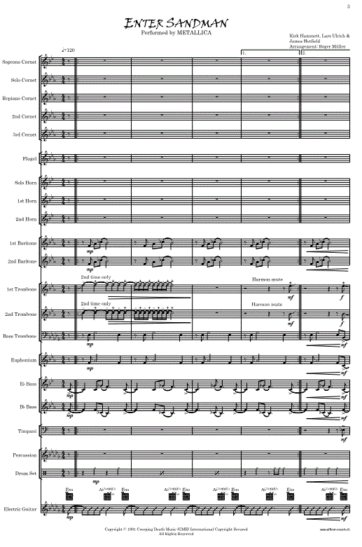 Aanvullende informatie/inhoud Roger Müller, een gerenommeerd arrangeur op het gebied van blaasmuziek, heeft "Enter Sandman" gearrangeerd voor brassband. Dit arrangement stelt blaasorkesten en brassbands in staat om Metallica's iconische nummer met een frisse sound te interpreteren. De partituur is speciaal ontworpen voor brassbands en combineert de krachtige gitaarriffs van het origineel met de sonische diversiteit van een brassband. Dit resulteert in een unieke versie die geschikt is voor zowel traditionele brassbandensembles als moderne arrangementen.