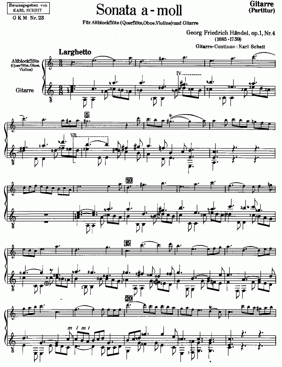 Sonata a-moll für Altblockflöte und Gitarre - Muzieknotatie-voorbeeld