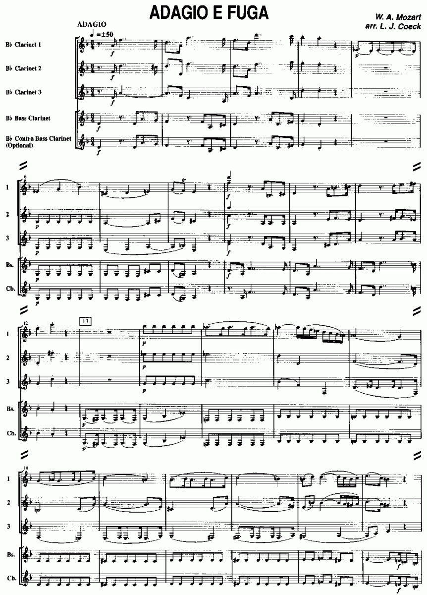 Adagio e fuga - Muzieknotatie-voorbeeld