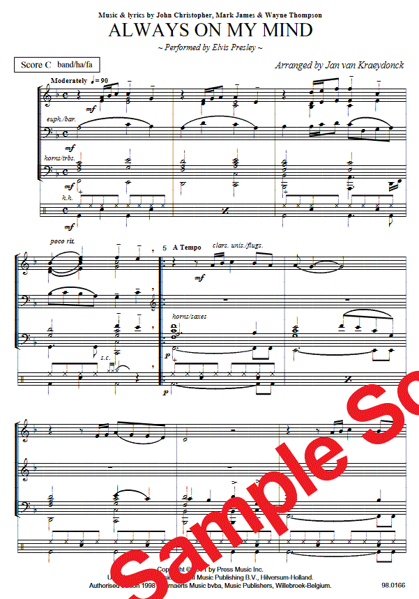 Always On My Mind - klik hier Always On My Mind (harmonieorkest), Samenvatting van de partituur en stemverzameling