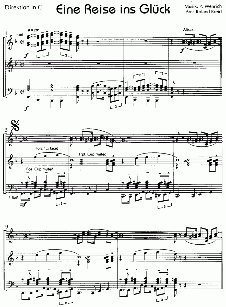 Eine Reise ins Glück (Sail along silv'ry Moon) - klik hier Eine Reise ins Glück (Sail along silv'ry Moon) (harmonieorkest; alt saxofoon), Samenvatting van de partituur en stemverzameling
