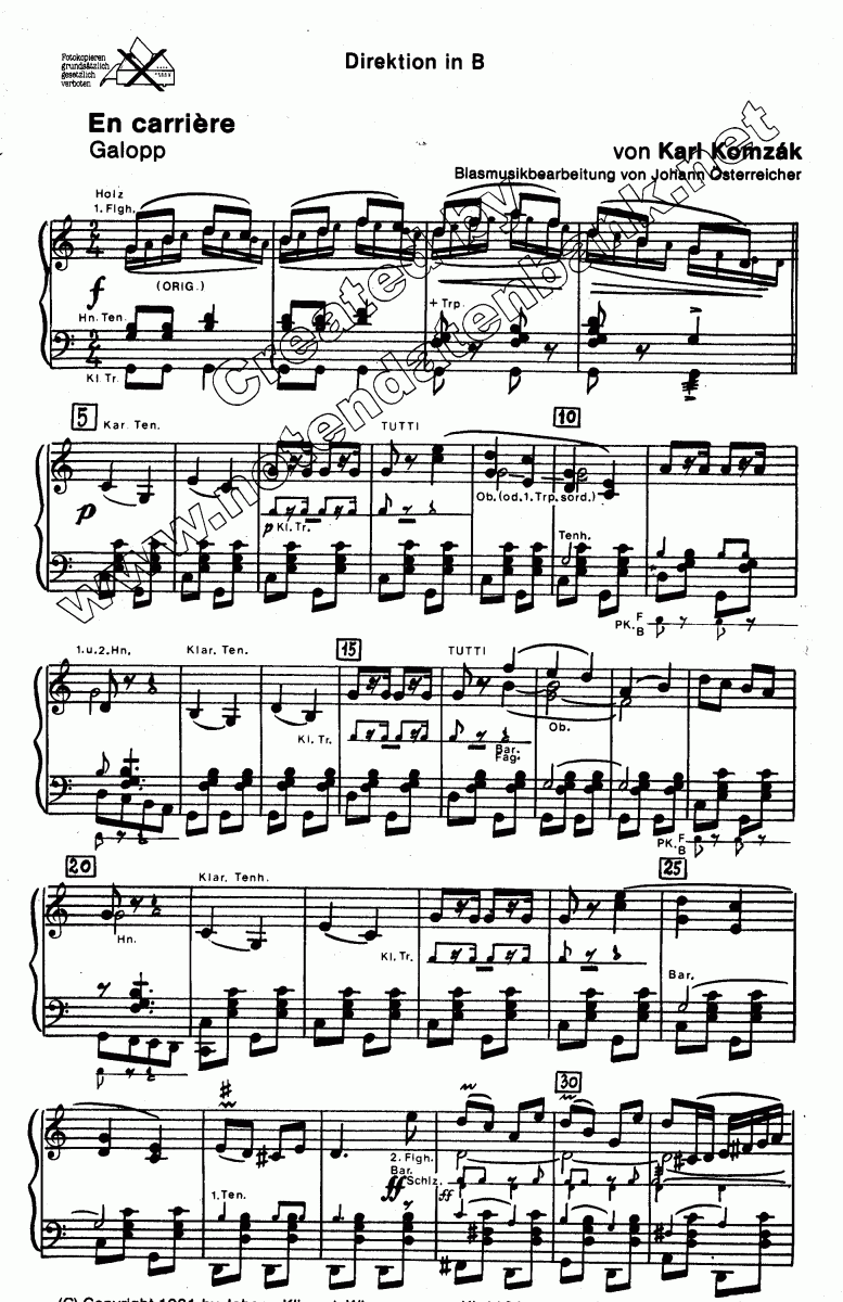 En Carriere - klik hier En Carriere (harmonieorkest), Samenvatting van de partituur en stemverzameling
