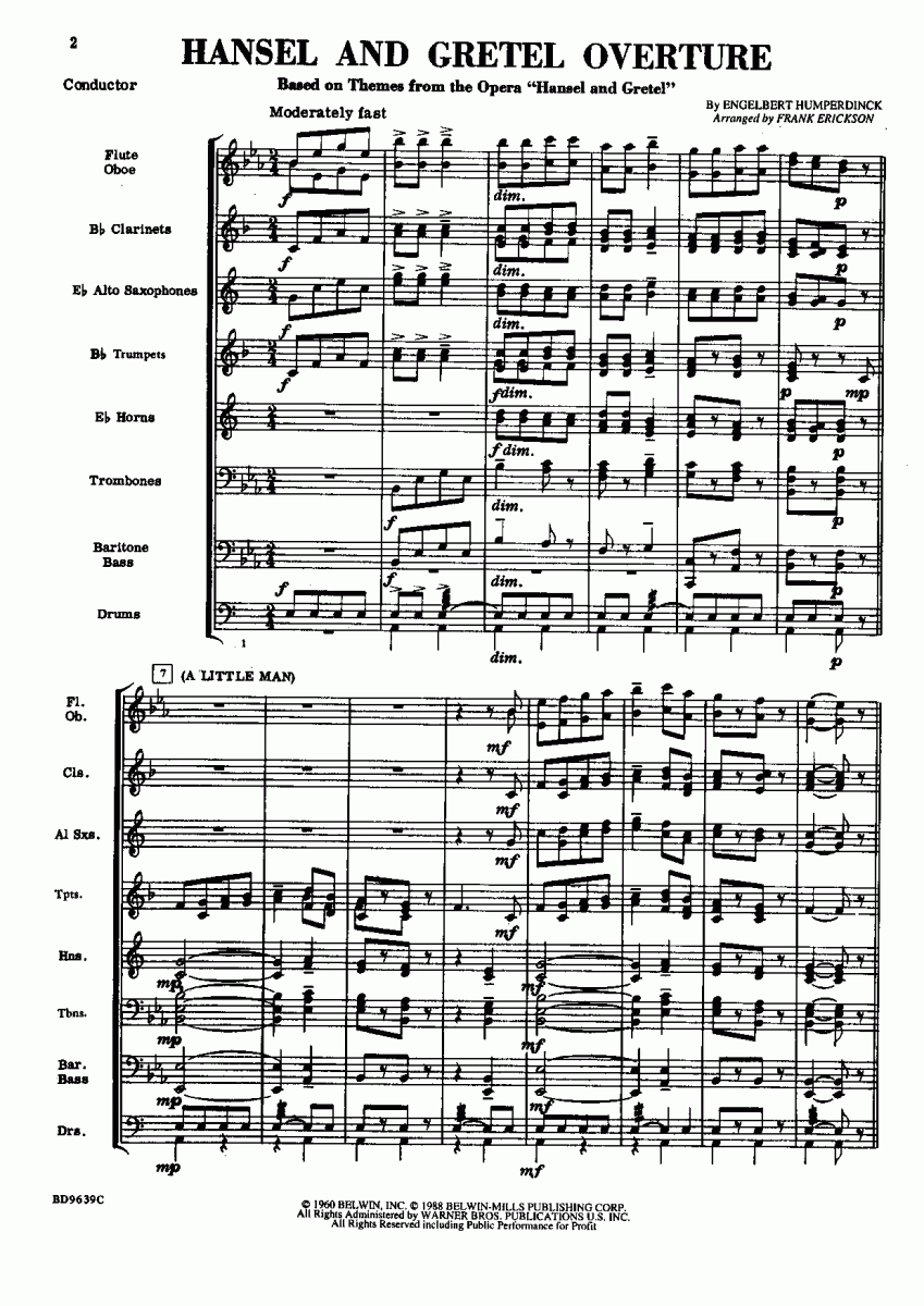 Aanvullende informatie/inhoud Obwohl Opern nur ein relativ kleines Publikum ansprechen, gehen Melodien oft quer durch die ganze Welt. Bei den Arien von 'Hänsel und Gretel' ist dies der Fall. Frank Erickson verwendete für diese wunderschöne Ouvertüre 'A Little Man', 'Children'a Prayer' und 'Little Dance'.
