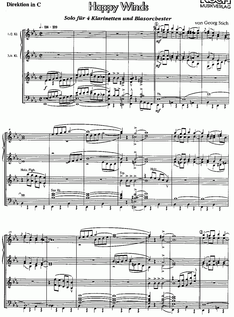 Happy Winds - klik hier Happy Winds (harmonieorkest; klarinet in Bb), Samenvatting van de partituur en stemverzameling