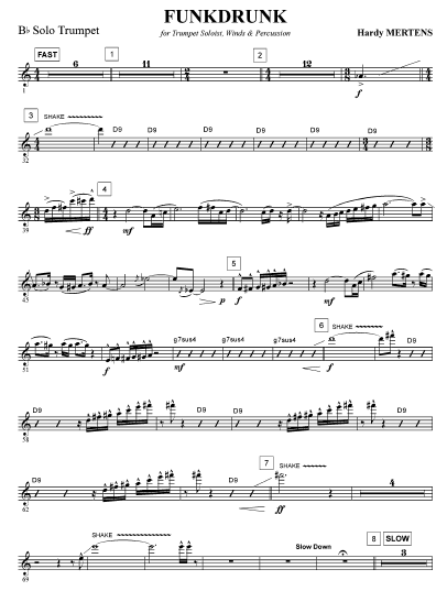 Funkdrunk - klik hier Funkdrunk (harmonieorkest; trompet Bb), partituur en delen