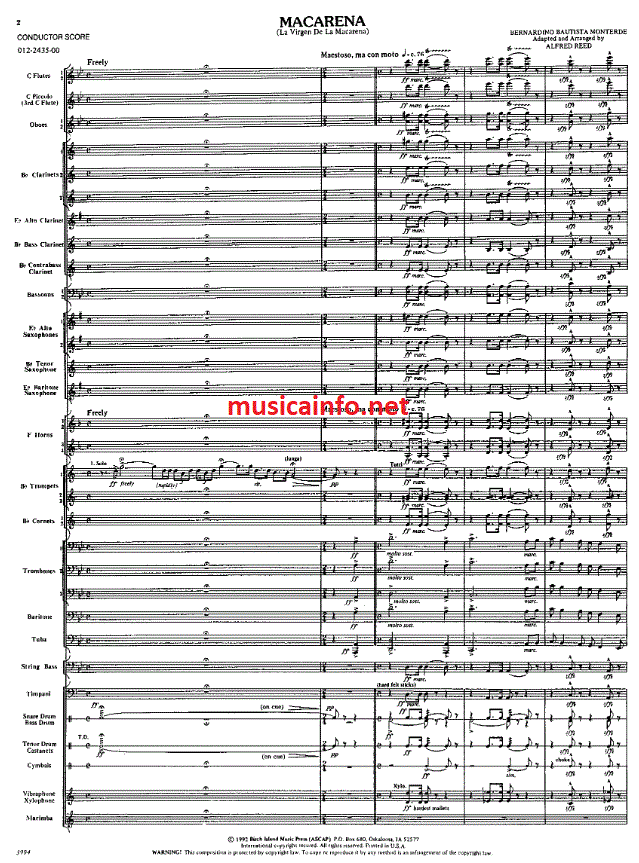 Aanvullende informatie/inhoud DE concertversie van de beroemdste van alle stukken die met de stierenring te maken hebben. "La Virgen de la Macarena", gearrangeerd zoals alleen Alfred Reed dat kan. Zowel binnen als buiten speelbaar!