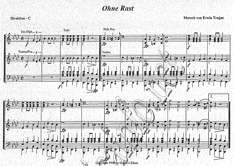 Ohne Rast - klik hier Ohne Rast (harmonieorkest), Samenvatting van de partituur en stemverzameling
