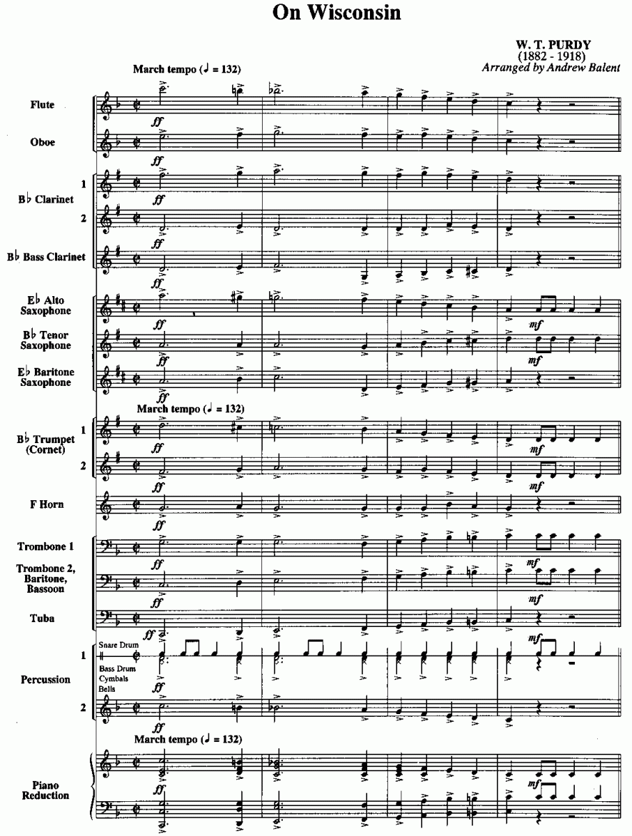 "On Wisconsin" is het schoollied van de Universiteit van Wisconsin en het officiële staatslied van Wisconsin. Het moet worden uitgevoerd in een vlot marstempo met zorgvuldige aandacht voor articulatie, ensemblebalans, en dynamische controle.