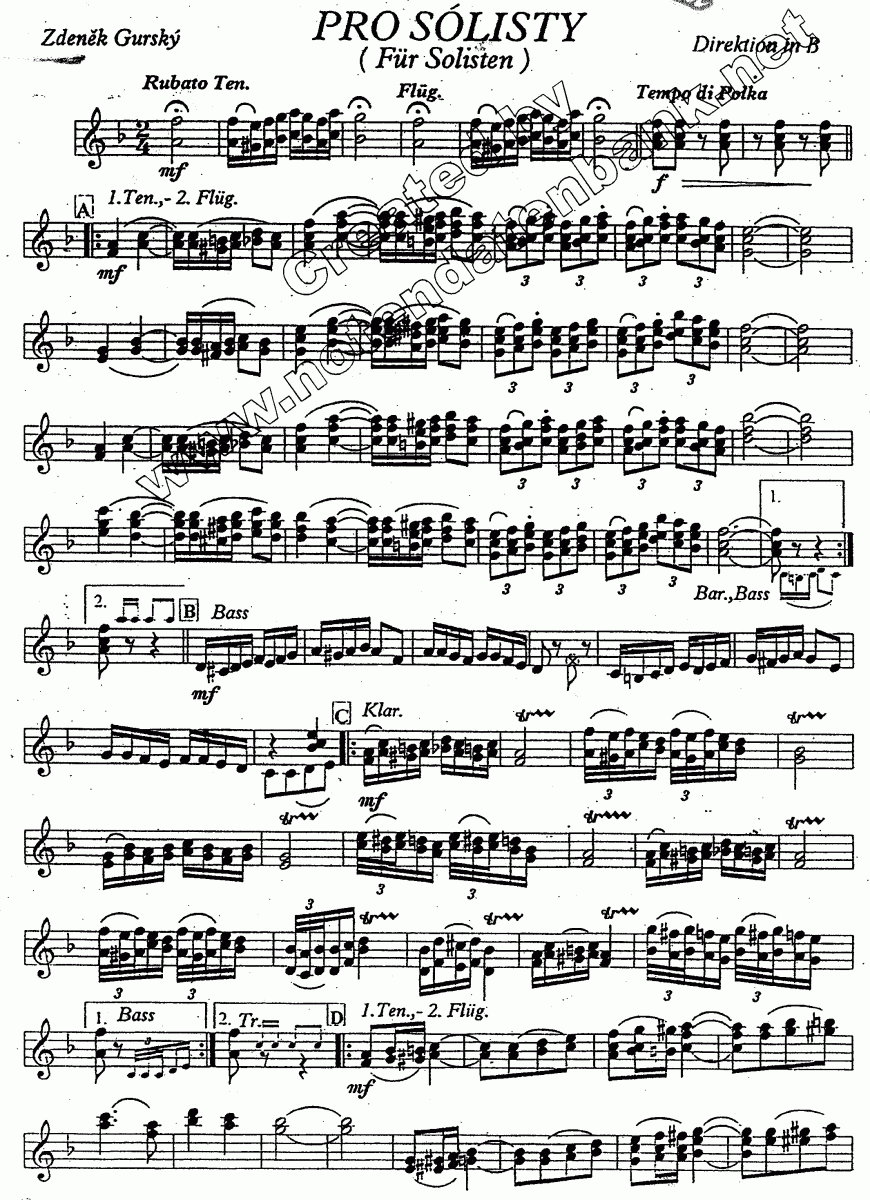 Pro solisty (Für Solisten) - klik hier Pro solisty (Für Solisten) (harmonieorkest), Samenvatting van de partituur en stemverzameling