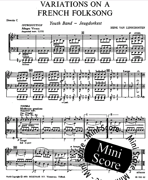 Variations on a French Folksong - klik hier Variations on a French Folksong (harmonieorkest), Samenvatting van de partituur en stemverzameling