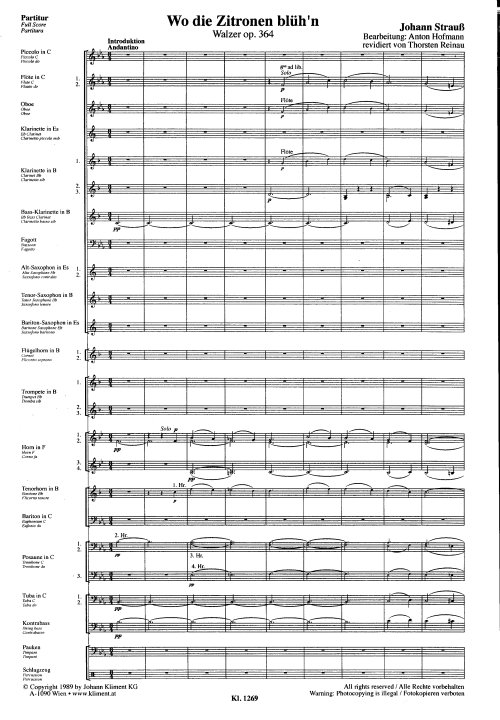 Wo die Zitronen blüh'n - klik hier Wo die Zitronen blüh'n (harmonieorkest), partituur en delen