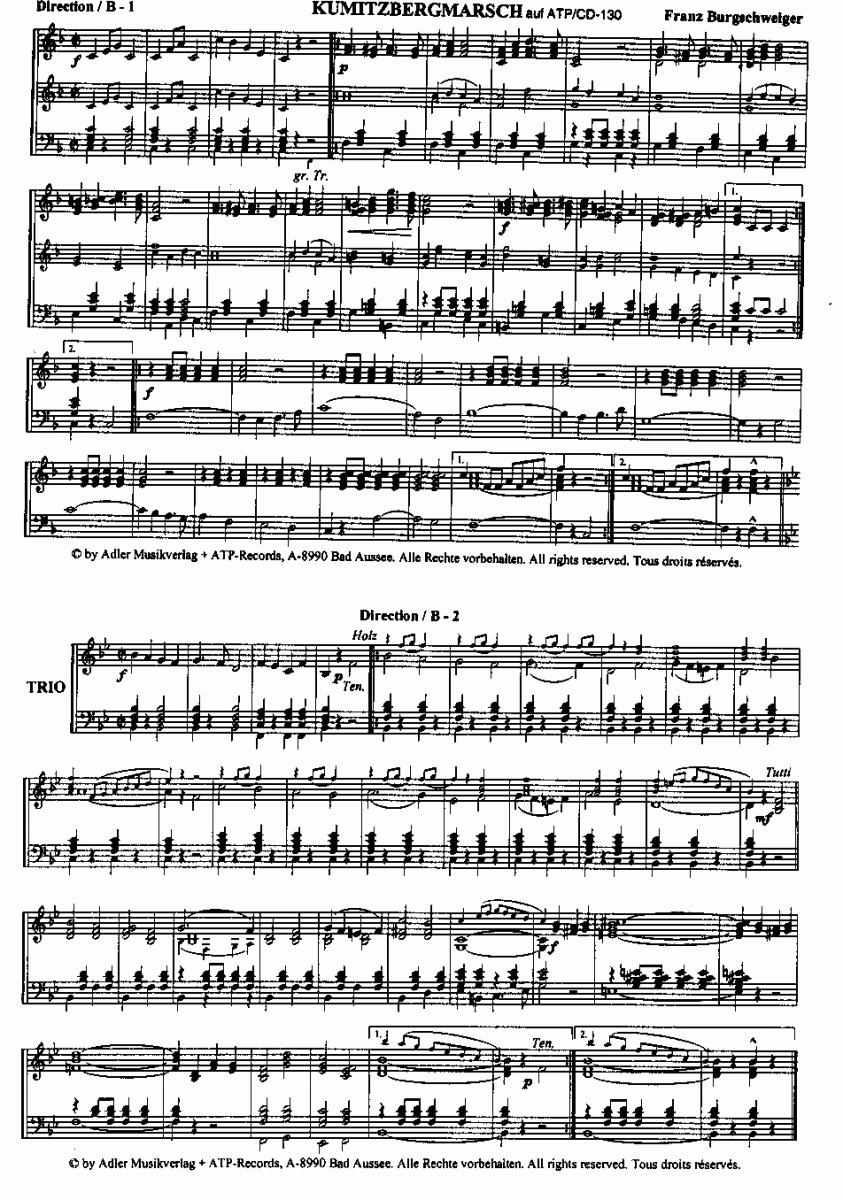 Kumitzbergmarsch - klik hier Kumitzbergmarsch (harmonieorkest), Samenvatting van de partituur en stemverzameling