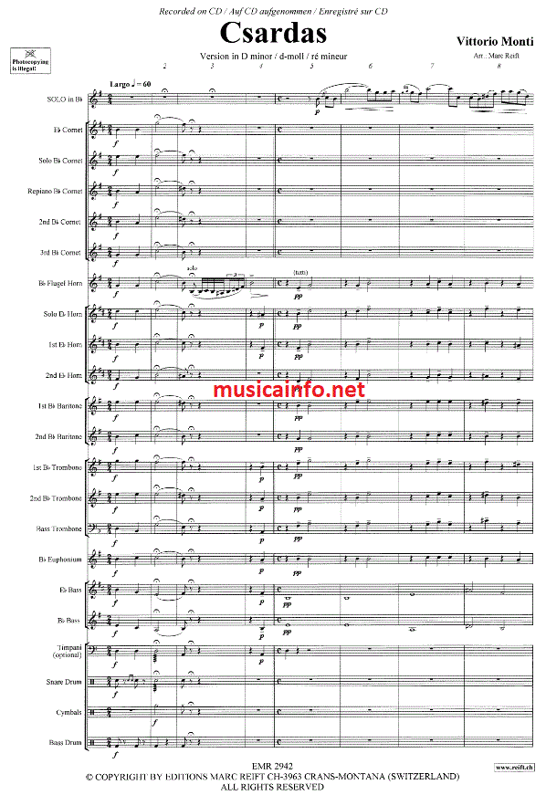Csardas - klik hier Csardas (brassband; Solo), partituur